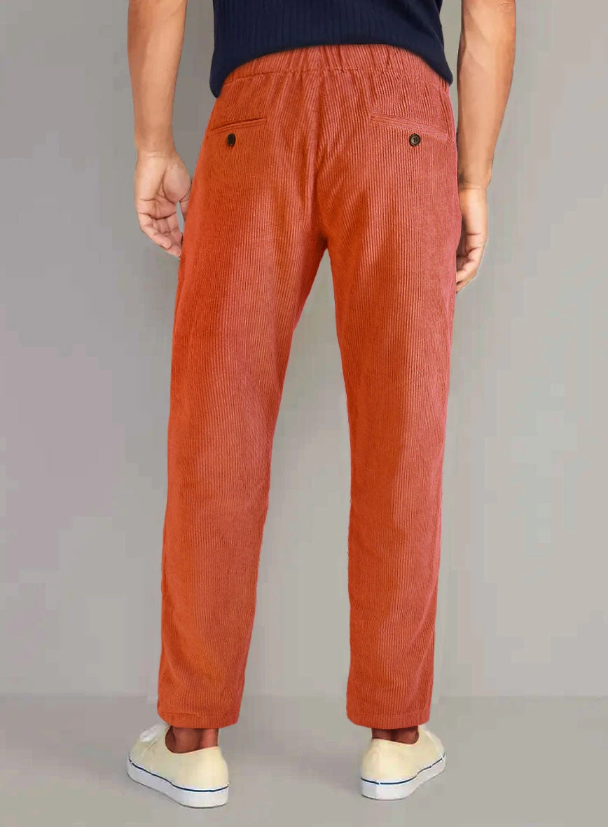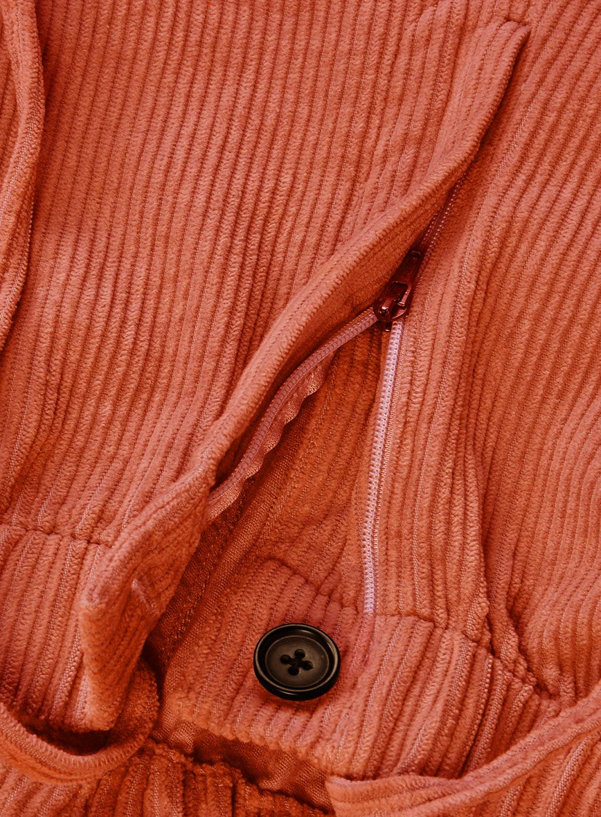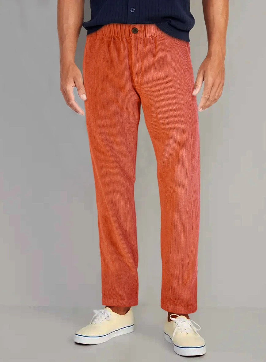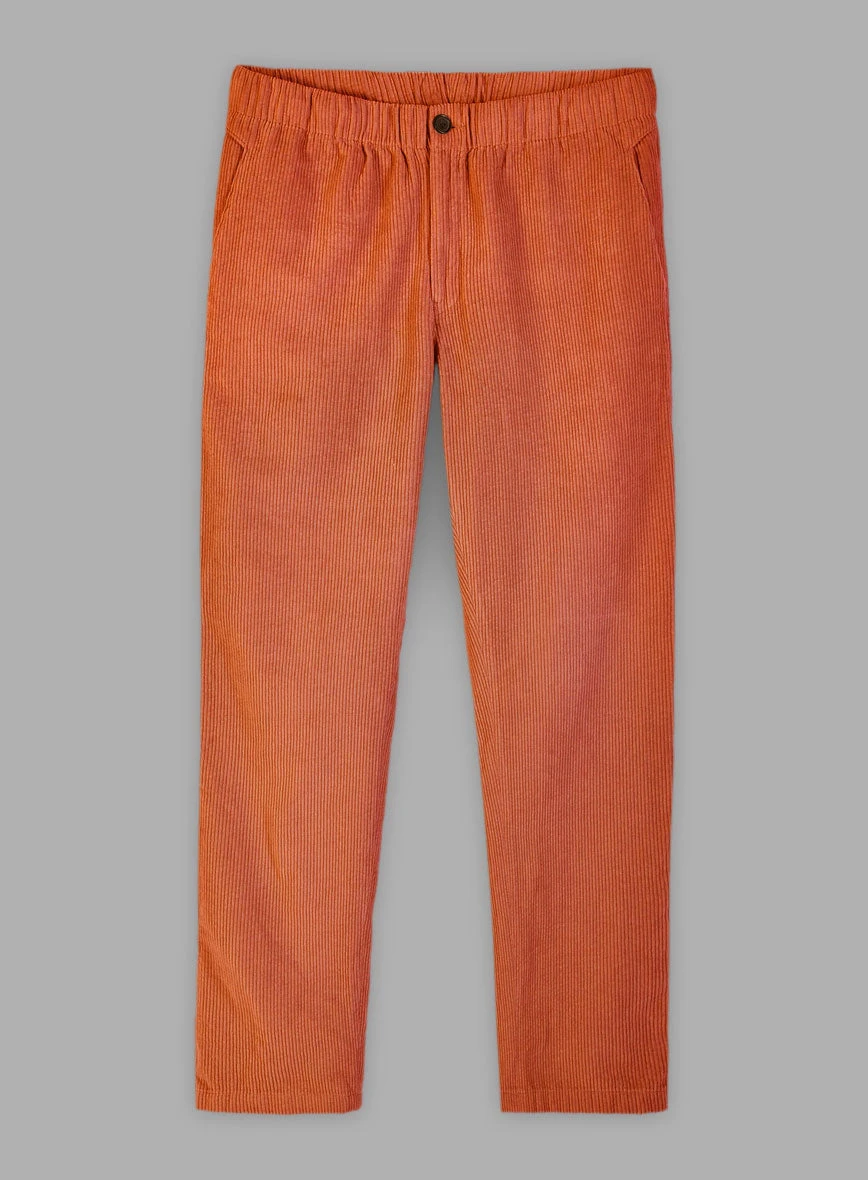 Spruce up an authentic statement piece by wearing our Burnt Orange Corduroy Easy Pants that improves sophisticated attire by aligning premium and elegant aspects. Convey a vibrant aura with our pants, crafted from cotton fabric that offers a thick, rich and ultimate softness with a refreshing texture over an orange shade that endows a superb character. Finally, reaching the height of elegance and sophistication with intricate tailoring results in an orange easy pants, an ideal selection to show up in unique situations and notable moments.