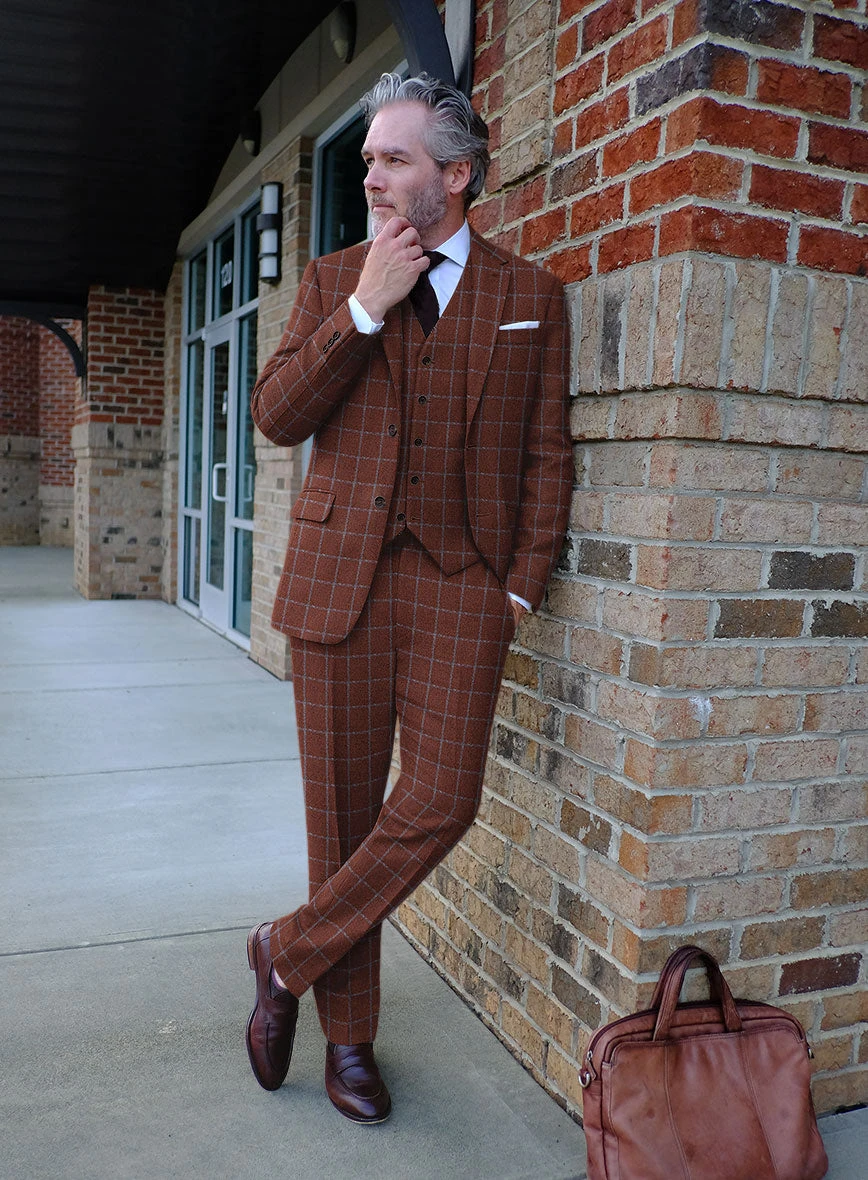 Team it with the Italian Alonxi Checks Tweed Suit for a chic silhouette that exudes sophistication from head to toe. First, embrace an effortless aura with this suit crafted from wool and polyamide fabrics that bestow a thick, comfortable, plush and soft finish with a checkered pattern in brown hues for added premium sophistication. Then, elevate the subtlety of silhouette with a tailoring perfection for timeless appeal bringing a flair of comfort and style, arriving for significant occasions and lively evenings.