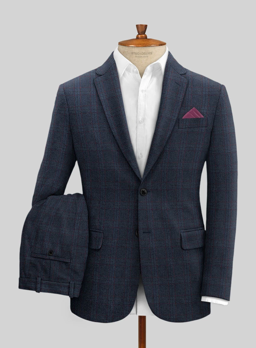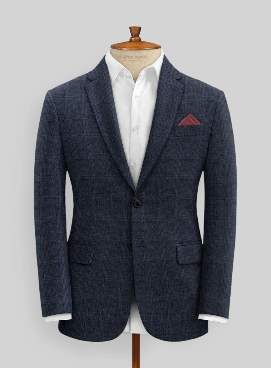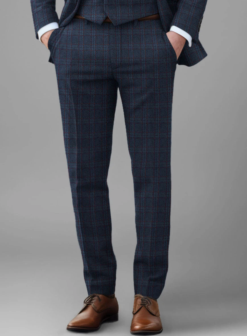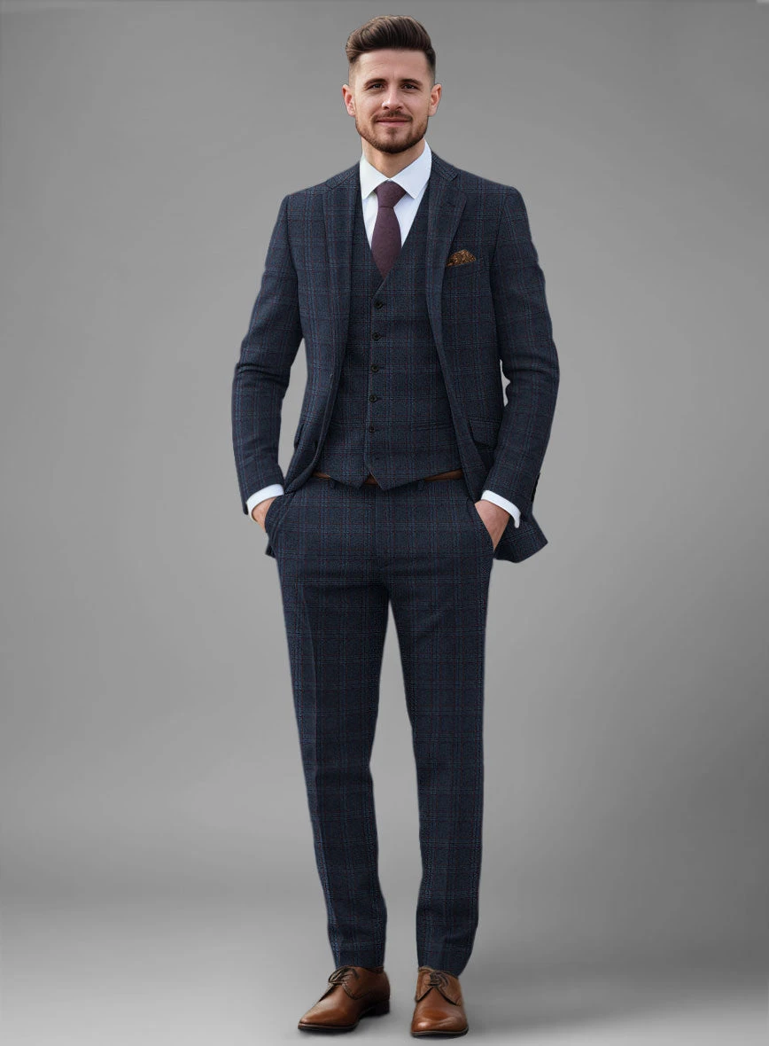 Sustain a stylish and trendy allure with our Italian Atessia Check Tweed Suit. Meticulously crafted from a sumptuous wool blend, it boasts deep blue hue with a subtle hint of red plaid radiating confidence and refinement. Tailored for the discerning gentleman who prioritizes both style and comfort. Whether you’re attending a business meeting or enjoying a weekend getaway, this suit is designed to deliver a polished and refined look without compromising.