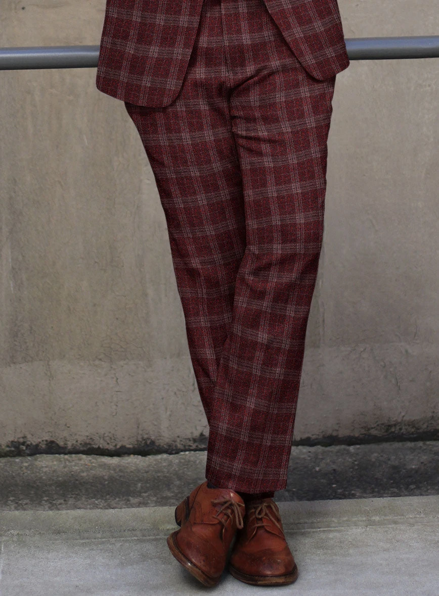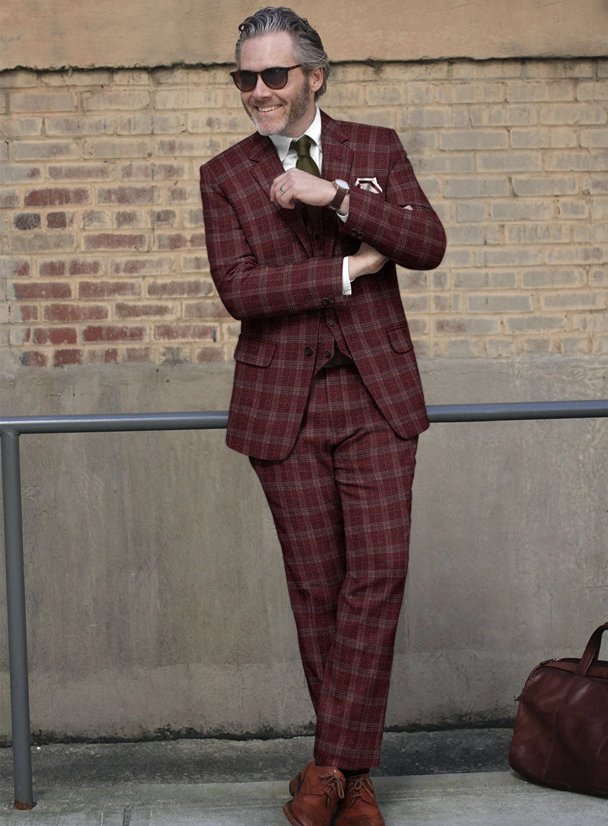 Intertwine your work and luxury wear with our Italian Austor Checks Tweed Suit that has a polished and modern attribute. Crafted with a wool blend, this elegant piece has a plaid pattern in a dark and robust red shade that are the hallmarks of perfection. Meanwhile, this custom-made piece offers comfort and hugs your well-maintained physique. So grab this piece to gain superiority amongst everyone, and it lets you be a brand.