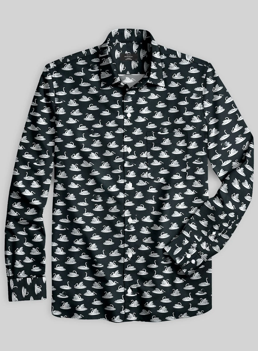 Create a prime choice for summer by wearing our Italian Cotton Cygnus Shirt. Besides, it is crafted from pure cotton fabric, which grants a supple and airy feel to the wearer and a black shade over a stunning swan pattern elevates the shirt’s appeal to show up at beach outings and warm situations.