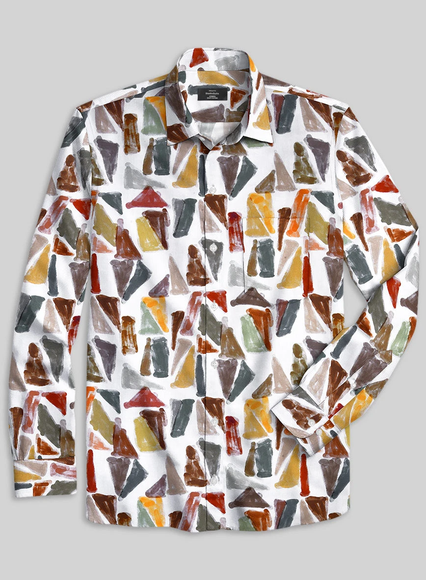 Make room for stylistic flair by pulling off our Italian Cotton Gosri Shirt, which exudes a crisp, supple and breezy feel with an abstract pattern over green and yellow hues. So, Make an entrance at alluring events by investing in this stunning piece.