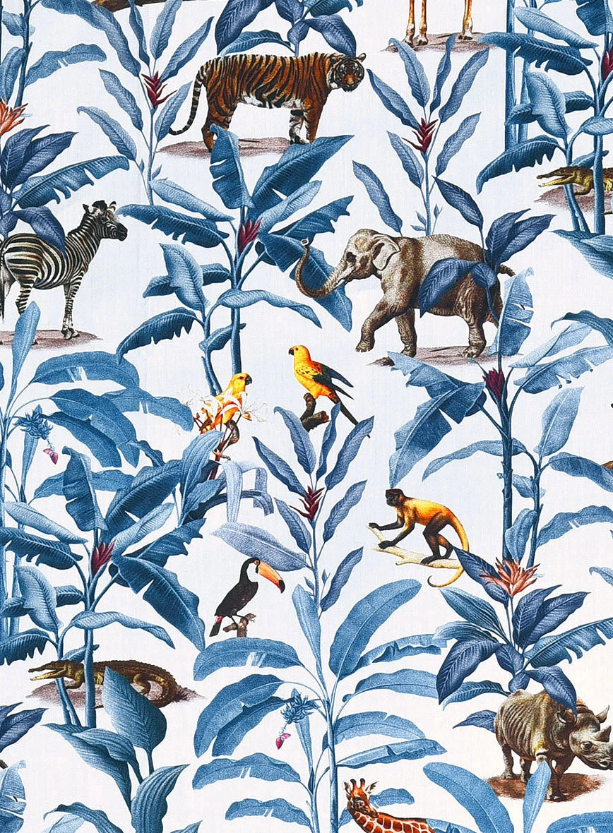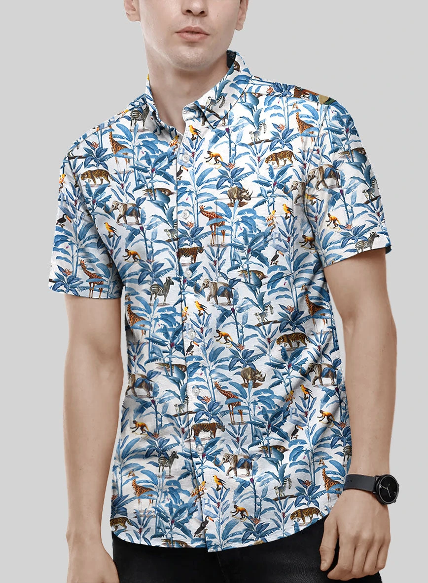 Portray the natural aesthetics with our Italian Cotton Rain Forest Shirt, crafted from pure cotton, which draws a delicate, stylish, versatile look with forest and animal patterns. At the same time, the blue tint elevates the visual appeal of turning up the tropical excursions and warm settings.