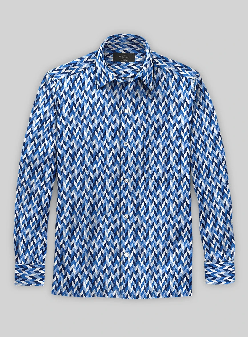 If you’re looking to elevate your after-six wardrobe game, seize our exceptional Italian Linen Elzar Shirt. Tailored from premium linen, it showcases a classic geometric pattern with shades of blue hues and a touch of white. This shirt can effortlessly blend into any section of your closet, eagerly waiting to save the day.