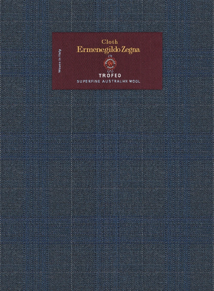- Lanificio Zegna Trofeo Malno Regal Blue Checks Wool Fabric