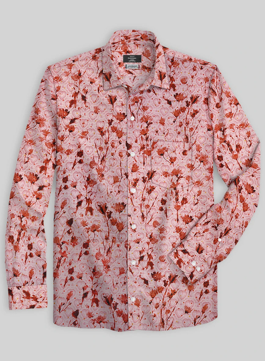 Inject a breath of fresh style into your wardrobe with our Leggiuno Cotton Jemin Shirt. Made from the softest pure cotton, ensuring you feel just as fabulous as you look. The floral pattern on a heart-shaped coral pink canvas adds a sprinkle of whimsy.