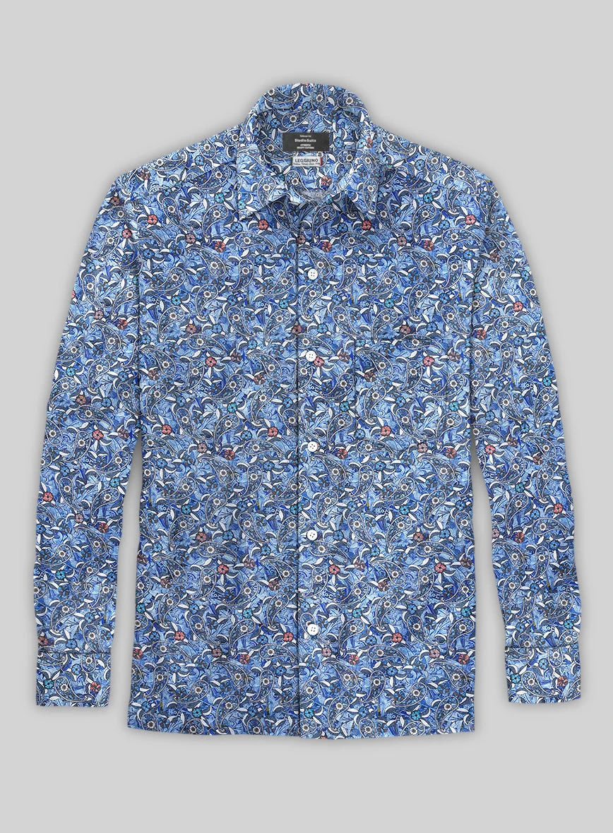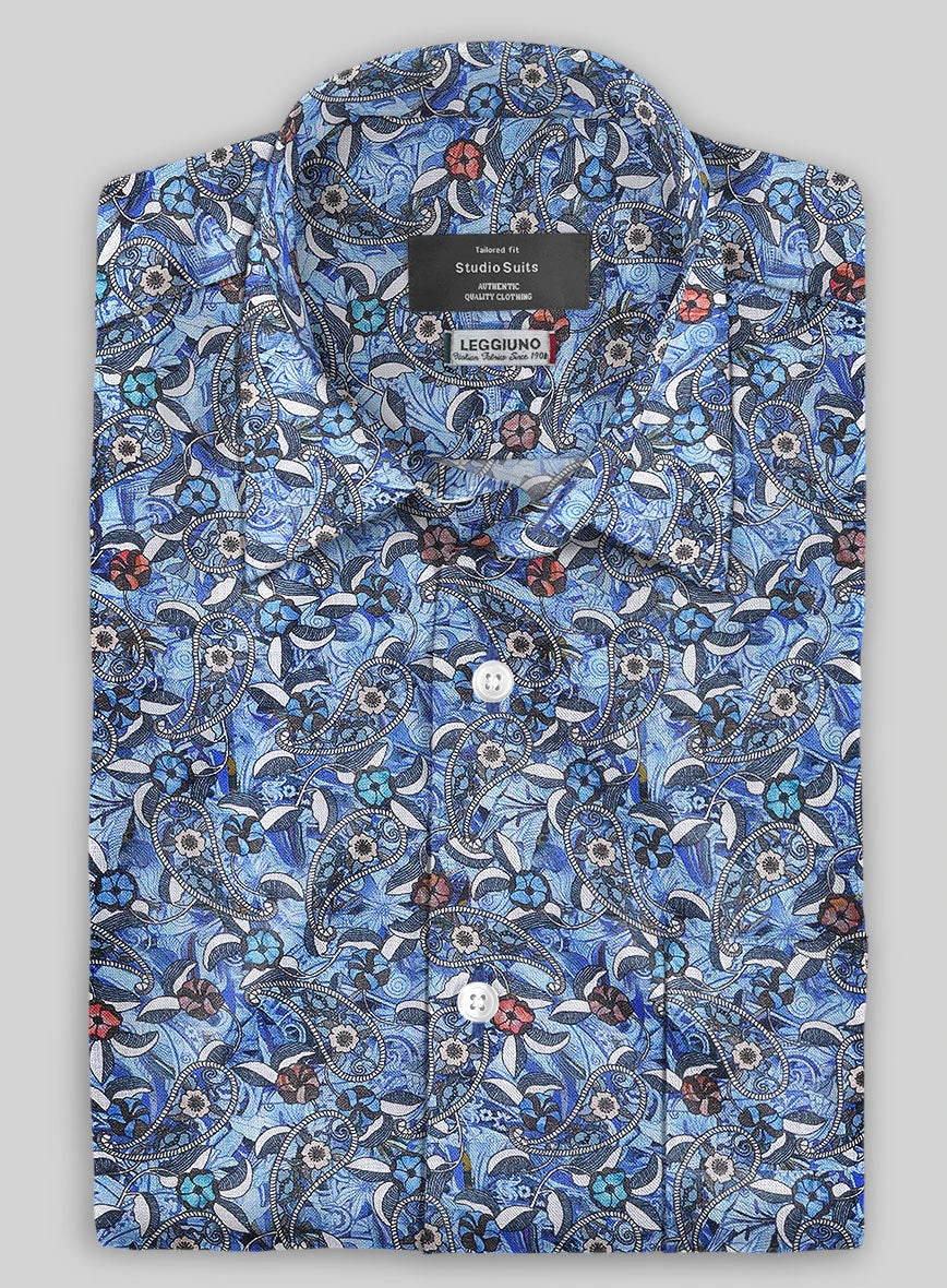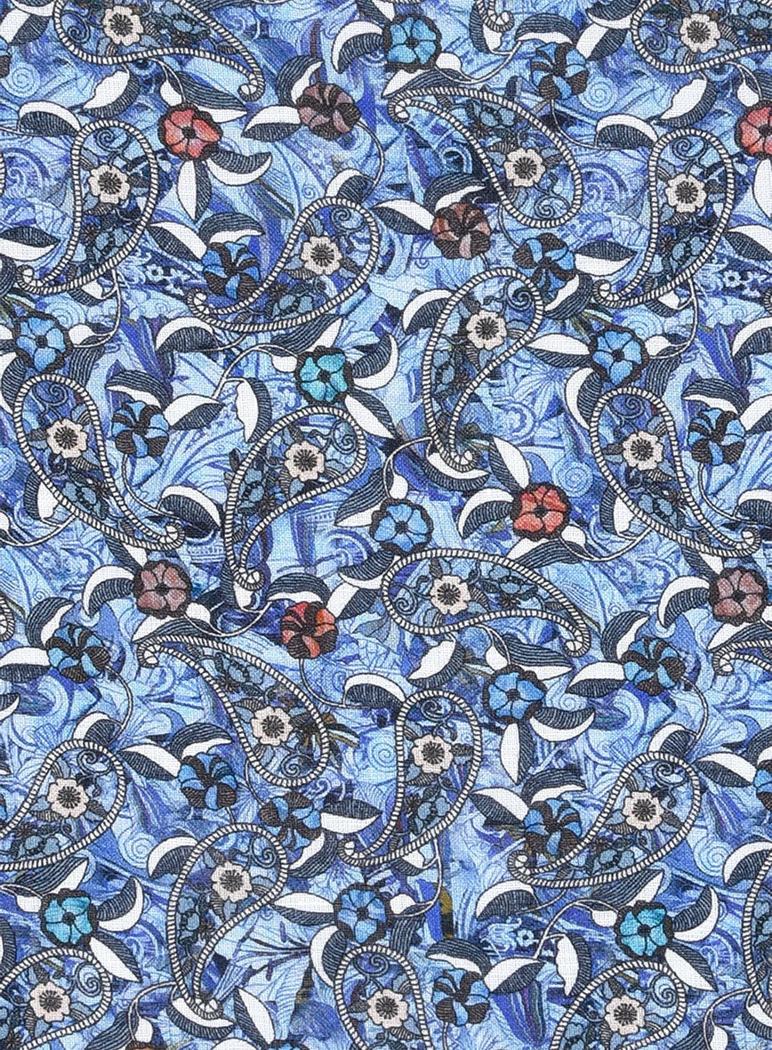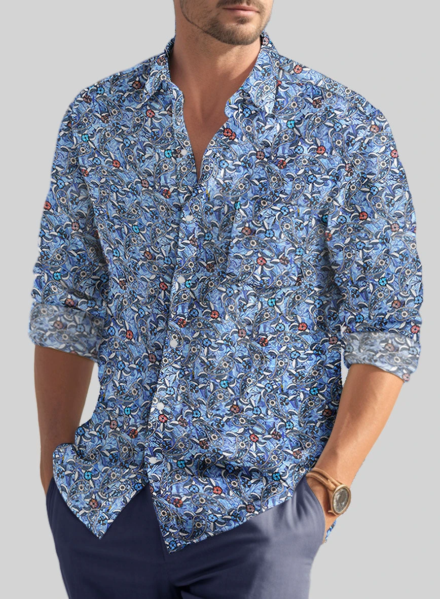 Feel the whisper of the breeze with our Leggiuno Linen Donio Shirt. Handcrafted from pure linen for all-day comfort, the serene blue canvas serves as the perfect backdrop for an intricate fusion of florals and paisley motifs — a delightful union of nature’s charm and charisma.