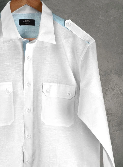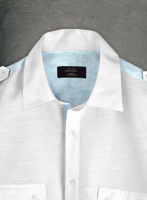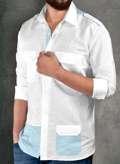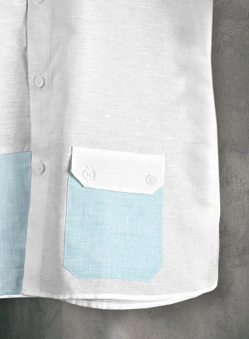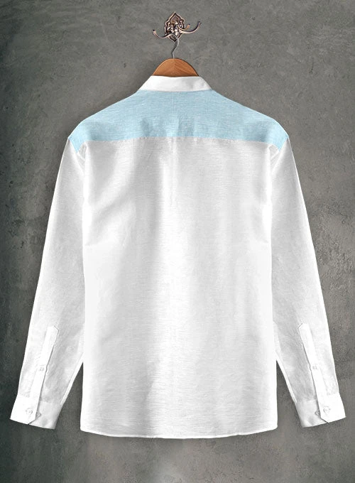 Crafted with a blend of cotton linen, our shirt has a bright white hue with adjoining highlights of a sky blue patch that will grab a lot of attention with envy. Its unique trait will provide a luxurious look for your party or office wear without compromising your comfort.