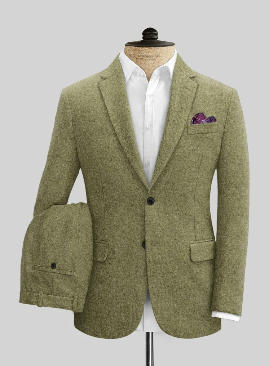Amp up the grace with the inclusion of our Naples Martini Green Tweed Suit, a true style stalwart. Besides, our suit is crafted from pure wool fabric and offers a soft, comfy feeling which carries a snug warmth that covers up as cozy as elegant with a solid pattern over a green shade. Appeal a chic statement matching with sharp tailoring imparts curvy outlines, which will boldly define the couture while appearing at a glamorous event or ceremonial occasion.