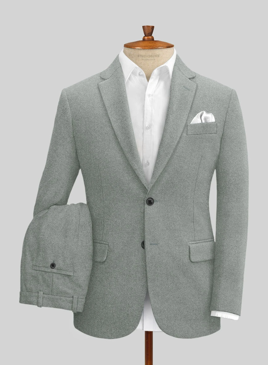 Take a stride towards the stardom that evokes nostalgia by adding our Naples Milano Sage Green Tweed Suit. Designed with pure wool fabric, which defines a dense, soft, pleasant feel and brings a warmhearted touch with a solid finish over the green shade with a slight dash of gray hue. First, develop a charming layer to the ensemble that uplifts your confidence. Later, adore the timeless flair that sits perfectly with fine tailoring that grants a stunning cozy fit that aims for ultimate comfort while smoothly shifting through cold climates.