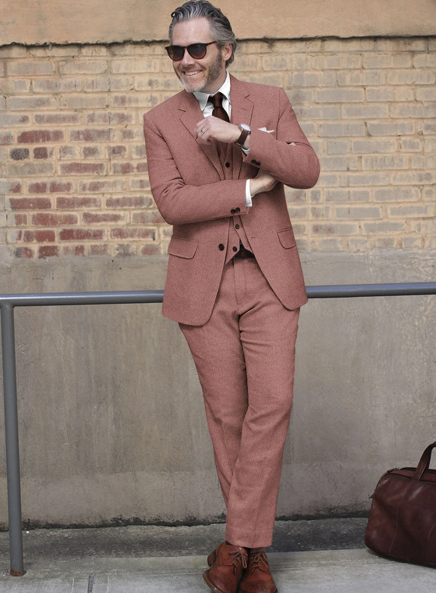 Upgrade your office wardrobe with the Naples Quartz Pink Tweed Suit, which adds a touch of luxury and sophistication to your formal attire. Made from pure wool, this suit ensures long-lasting comfort, allowing you to stay on top of your fashion game. Additionally, the attractive pink hue of the suit enhances its overall appeal, exuding a rebellious charm that is sure to turn heads.