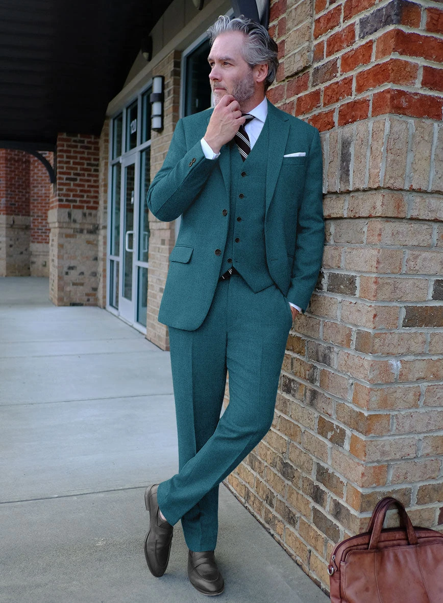 Solidify the vintage elegance by owning our Naples Teal Blue Tweed Suit that channels the glamorous spirit. Besides, our suit is cut from pure wool fabric, which lays out rich, durable textures that accompany a delectable feel with a solid blue finish. Moreover, leveling up the sartorial stature teaming with impeccable tailoring helps to conceal the sharp posture and ensures a genuine warmth ideal for formal meetings and social gatherings.