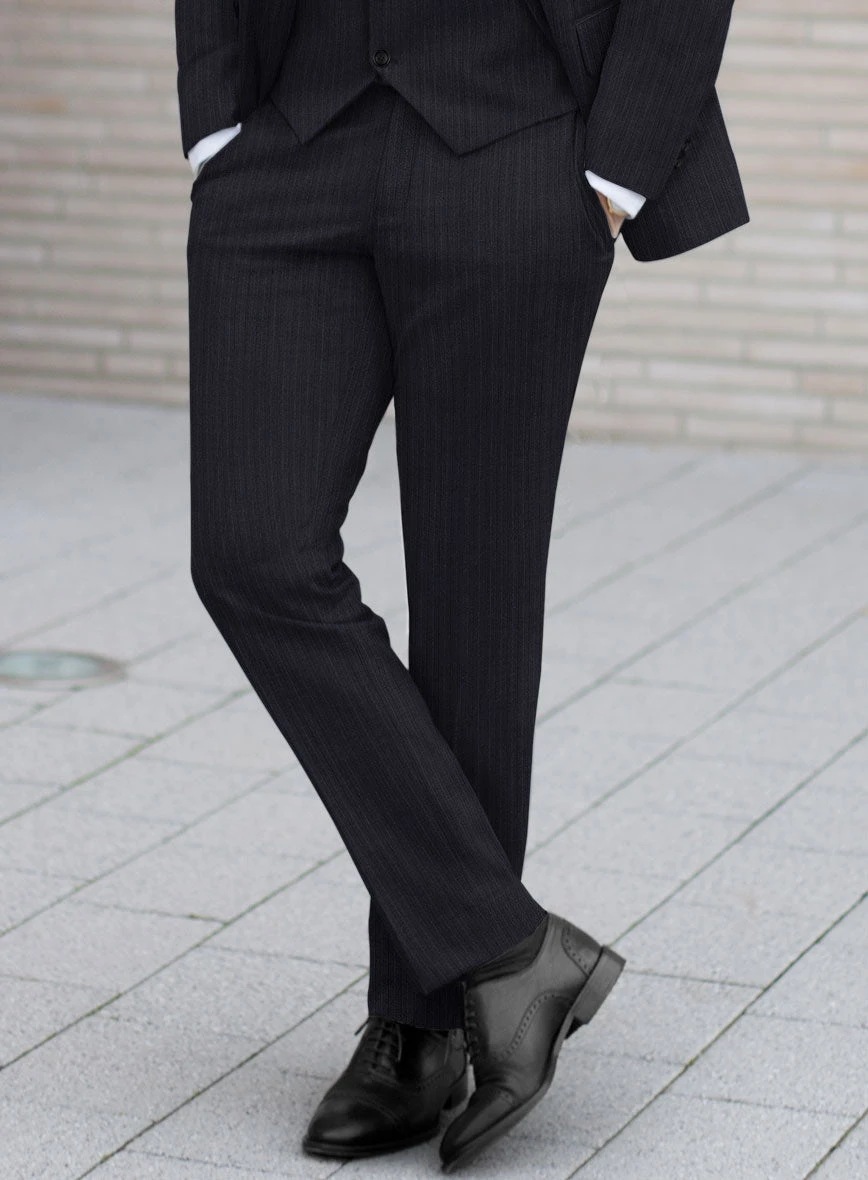 Experience the epitome of style and versatility with our Scabal Alsa Stripe Blue Wool Pants – your passport to a lifetime of impeccable fashion. Handmade from luxurious wool, its lavish blue shade, adorned with stunning vertical stripes, creates a bold and captivating look. Whether you’re embracing the day’s challenges or embracing the night’s allure, these pants effortlessly transition from weekday to weekend, making them an essential addition to your wardrobe rotation.