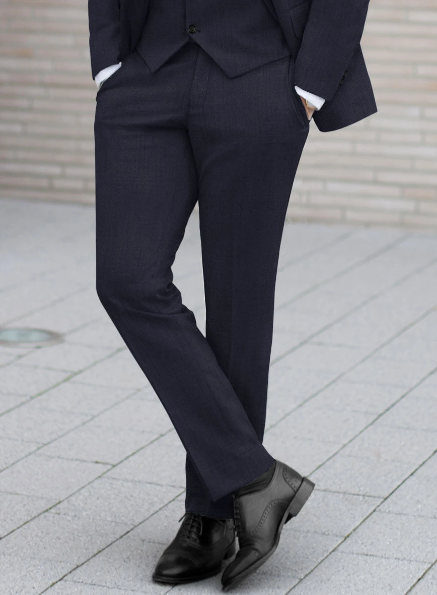 Unlock the secret to accessing doors with our Scabal Corde Navy Blue Wool Pants – An authentic symbol of class and elegance. Handcrafted from opulent wool fabric, its profound solid navy blue hue emanates ageless sophistication while ensuring you maintain composure throughout your daily pursuits, from bustling commutes to crucial meetings, assuring that you radiate refined poise at every stride.