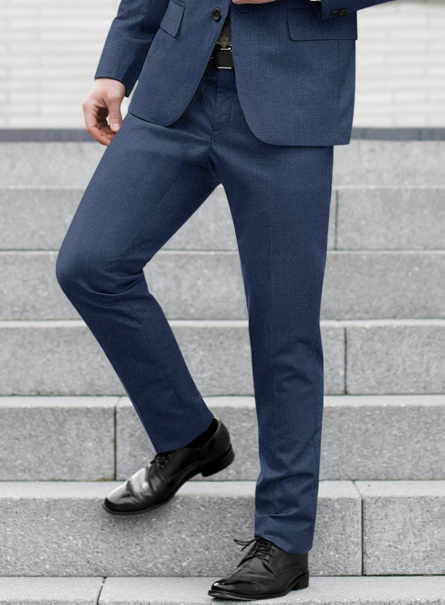 Enrich your already dazzling array of attires with our Scabal Cosmopolitan Nailhead Blue Wool Pants and really make your debonair look sparkle. Our pants are fine-tuned with merino wool fabric, bringing a dashing finish that will caress your frame with luxurious comfort. Plus, their dazzling blue hue will lend a swanky twist to any casual outfit. Put your best foot forward at formal events or office meetings with this chic silhouette that radiates an undeniable sophistication.