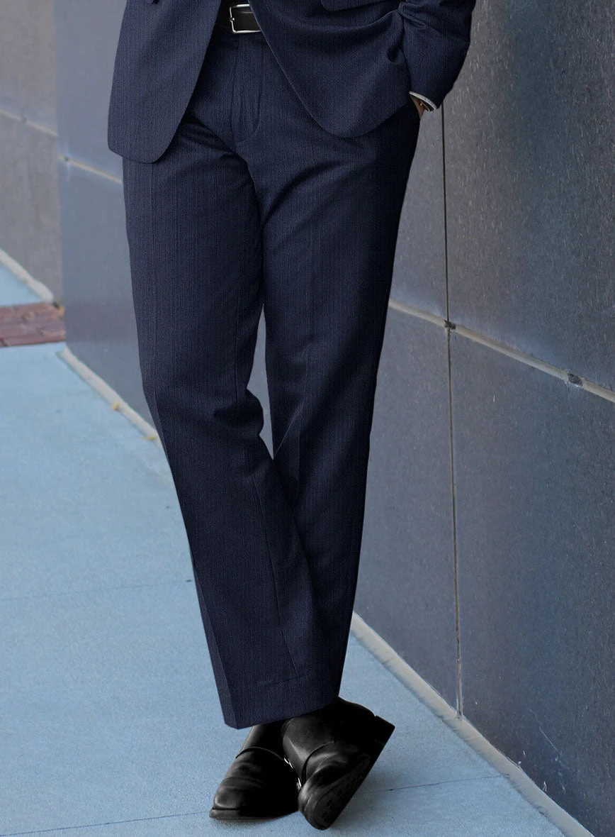 If you’re a fan of wearing stripes, look no further than our Scabal Londoner Sarcos Stripe Blue Wool Pants. Custom-built from pure wool, it features wafer-thin vertical stripes knitted into a luxurious blue backdrop that is noticeably distinct yet subtle enough to maintain a sophisticated and voguish look for any formal event or special occasion.