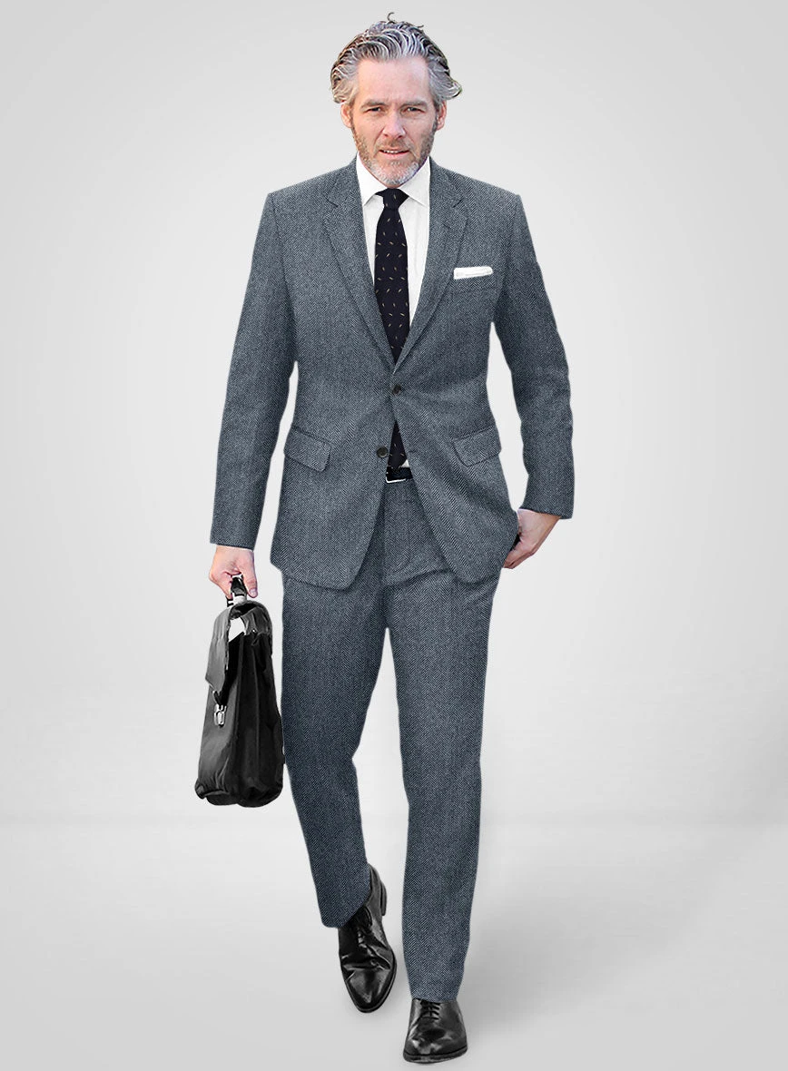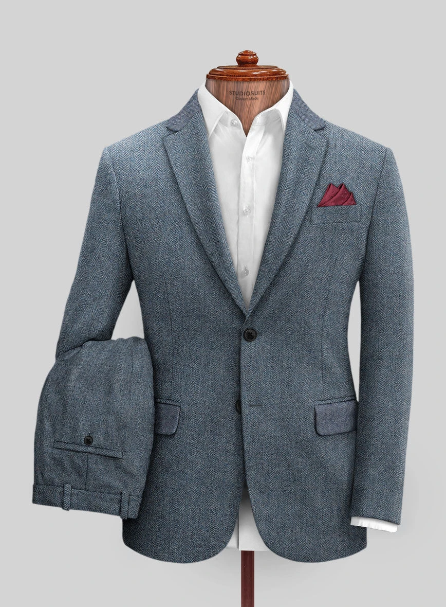 Both classic and versatile, our Vintage Herringbone Blue Tweed suit is surely going to take you through the seasons with stylish ease.Crafted from wool, this tweed suit is rich in quality and lends a distinctly bespoke edge which makes it a suave choice. Wear it with a matching waistcoat, a crisp white shirt and black shoes.