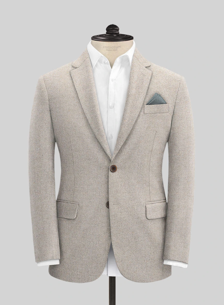 - Vintage Herringbone Light Beige Tweed Fabric