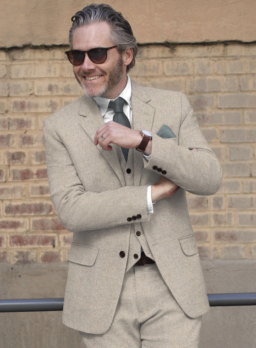 A top notch choice for stylishly bold modern gent, the Vintage Herringbone Light Beige Tweed suit is contemporary and modern in its appeal. Crafted from Premium Tweed Wool, our tweed suit will surely elevate your formal demeanour.